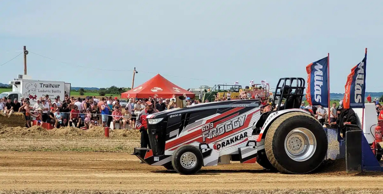 Le tracteur pulling est une discipline spectaculaire du sport mécanique, née en Europe dans les années 80 et devenue l’une des démonstrations de puissance les plus impressionnantes du continent. Le principe consiste à tirer une remorque à masse variable sur une piste rectiligne, le plus loin possible jusqu’au Full-Pull, situé à 100 mètres. Cette remorque comporte un godet destiné à recevoir des masses ; à mesure que le tracteur progresse, ce godet avance vers l’avant, augmentant la pression et transformant progressivement l’ensemble en un véritable traîneau. En fin de course, la remorque adopte une position dite “de bêche”, s’enfonçant dans le sol et provoquant une résistance extrême. Pour relever ce défi, les machines utilisées sont profondément modifiées, capables de délivrer plusieurs milliers de chevaux en quelques secondes, exigeant du pilote une maîtrise millimétrée, du sang-froid et une gestion rigoureuse de la puissance.