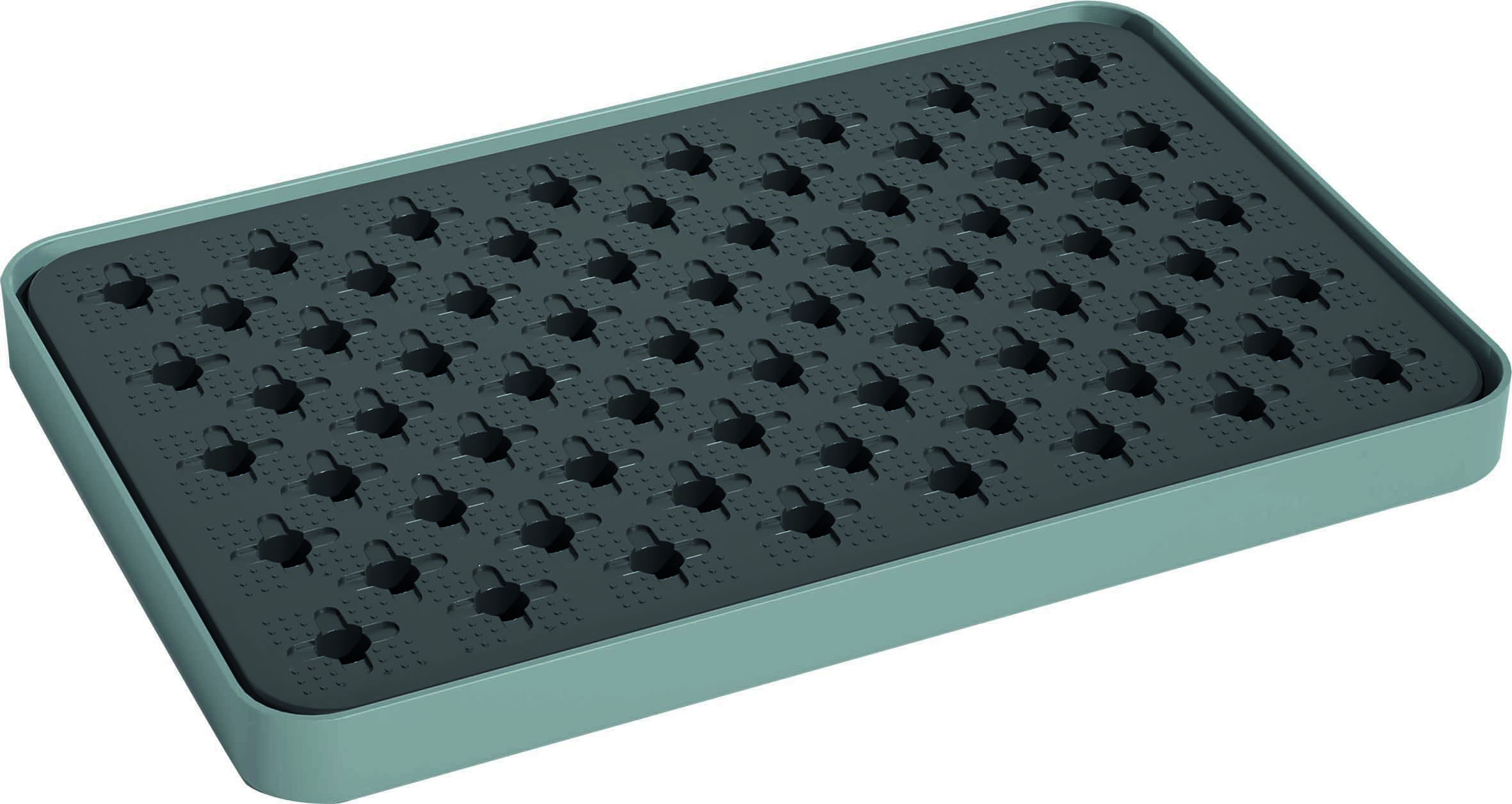 Plateau 100% PEHD avec caillebotis amovible en PP avec surface anti-dérapante.