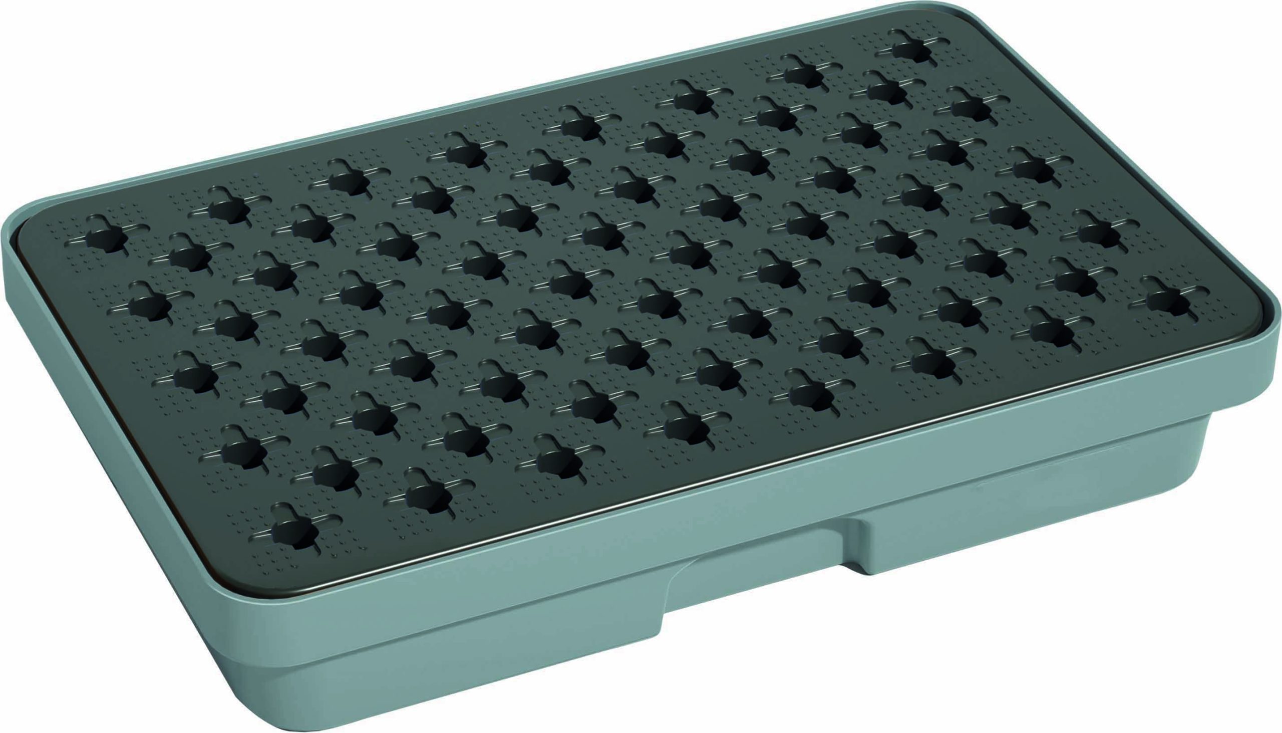 Plateau 100% PEHD avec caillebotis amovible en PP avec surface anti-dérapante.