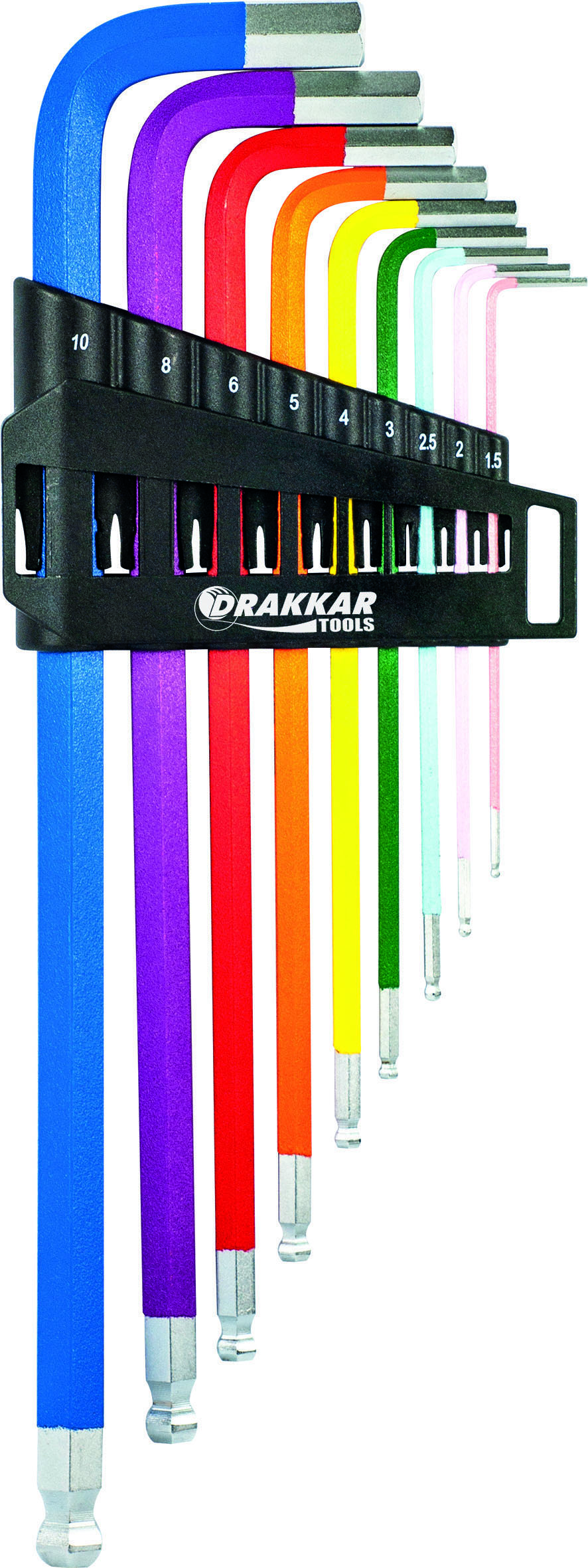 Clés mâles coudées hexagonales extra longues de 1,5 à 10mm – étui de 9 pcs sur carte