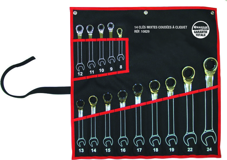 Clés mixtes coudées à cliquet de 8 à 24mm avec inverseur – pochette de 14 pcs