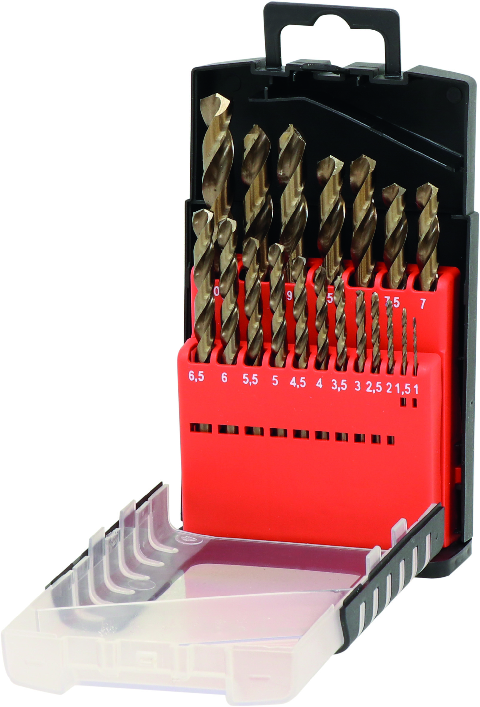 Coffret PVC de 19 forets métaux HSS 5% cobalt taillés meulés de 1 à 10mm