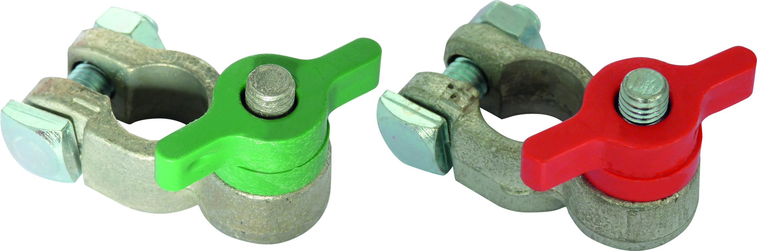 Colliers de batterie VL double serrage/papillon/rouge et vert – blister de 2 pcs