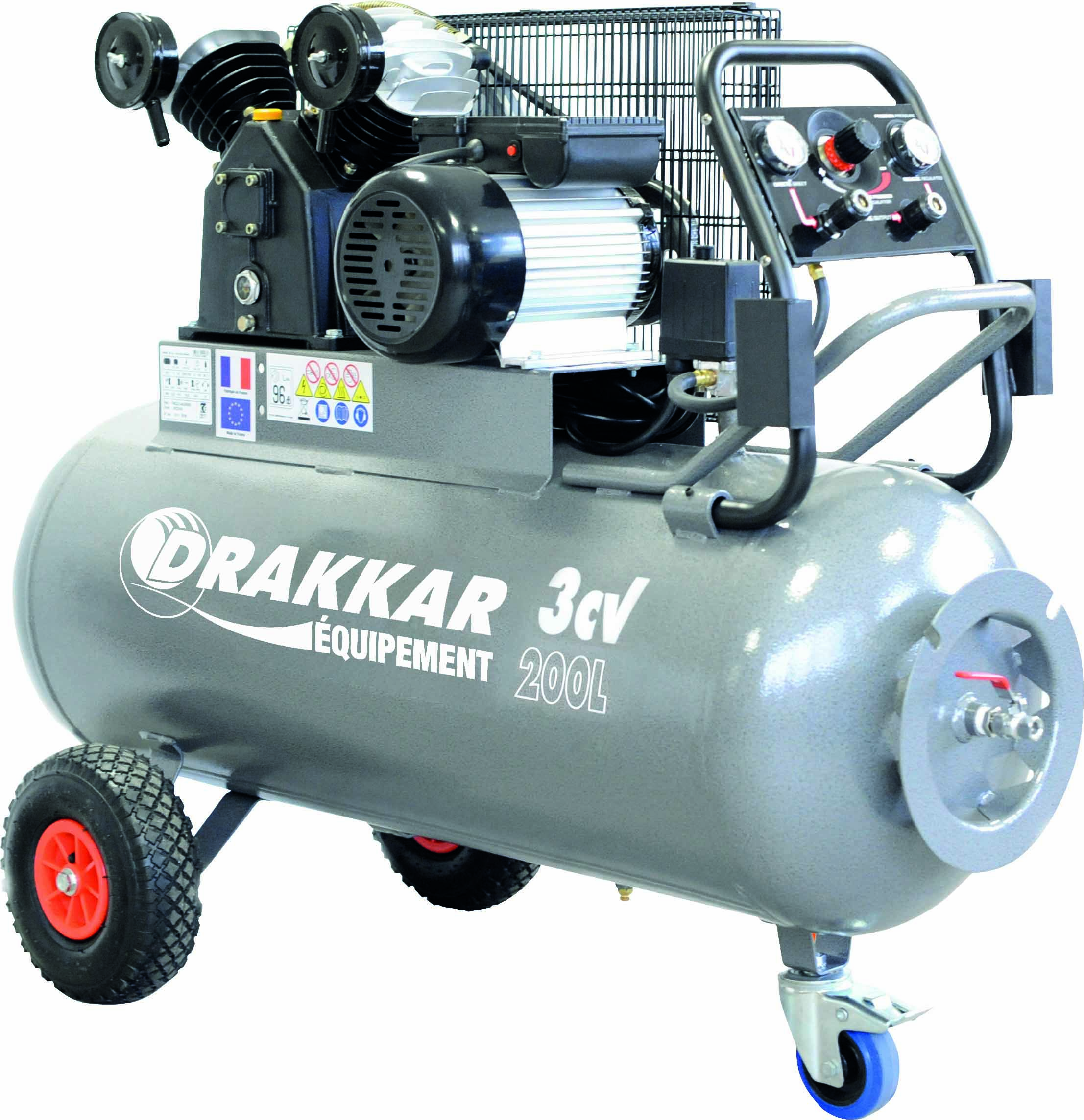 Compresseur à courroie 200L 9 bar 3CV tête en V 230V avec tableau de contrôle