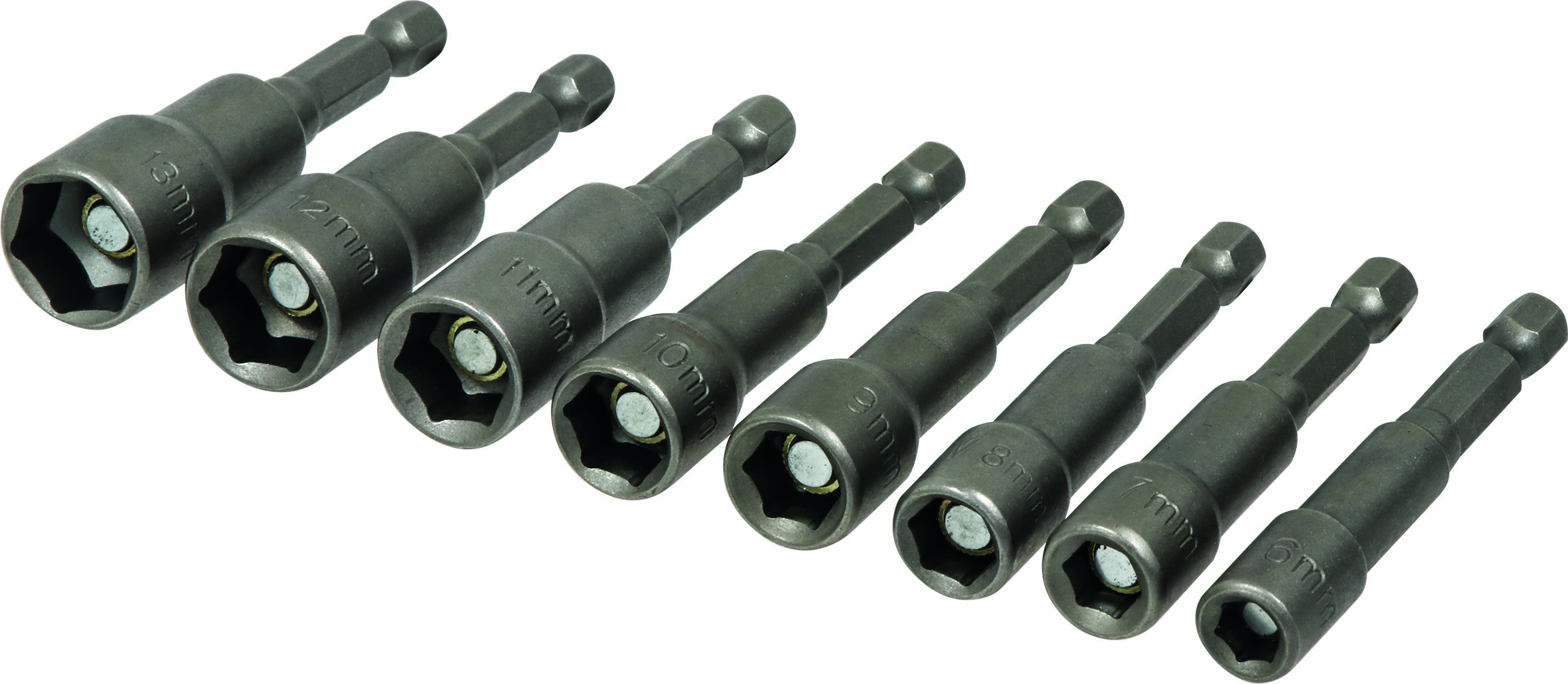 8 douilles : 6, 7, 8, 9, 10, 11, 12, 13mm.