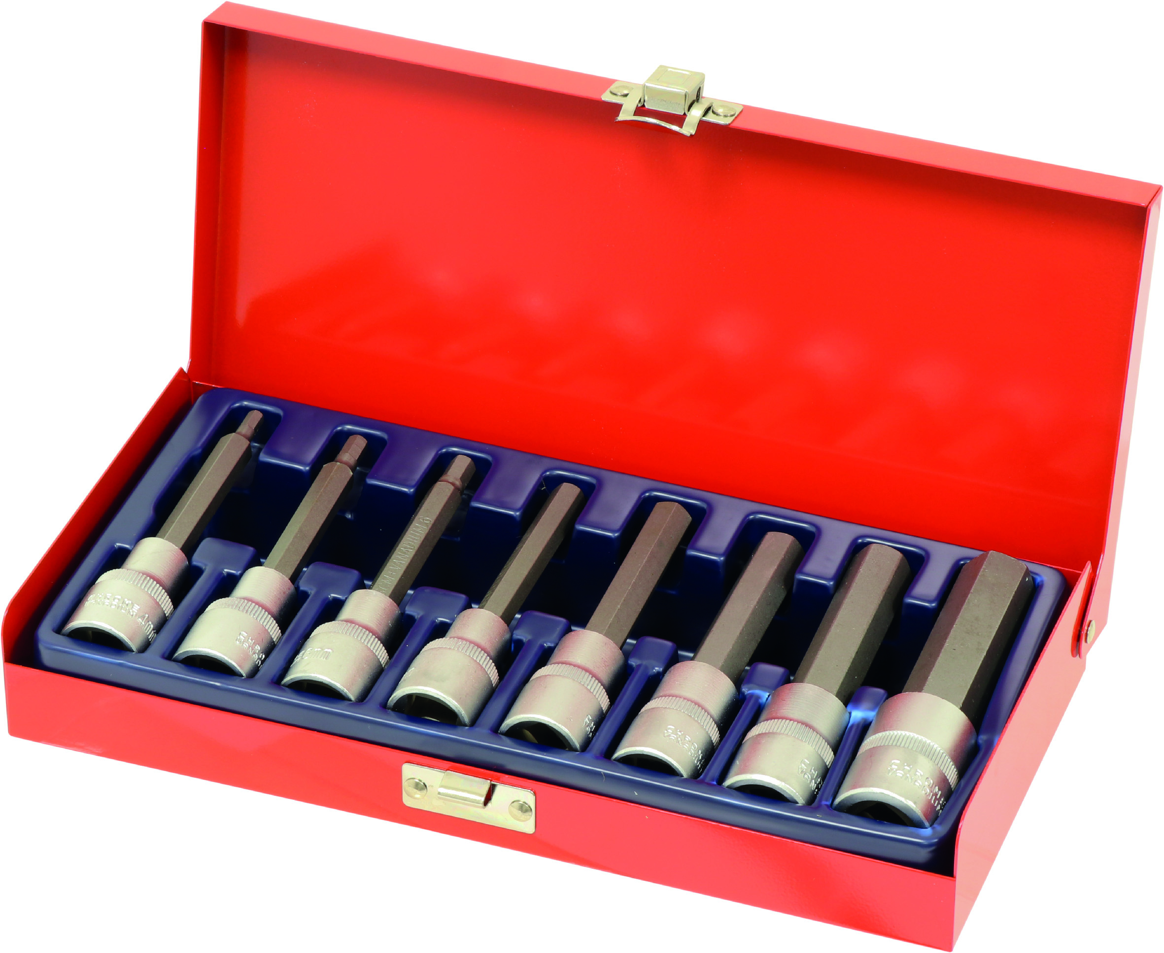 Douilles tournevis 1/2″ avec embout 100mm hexagonal de 4 à 17mm – coffret métallique de 8 pcs