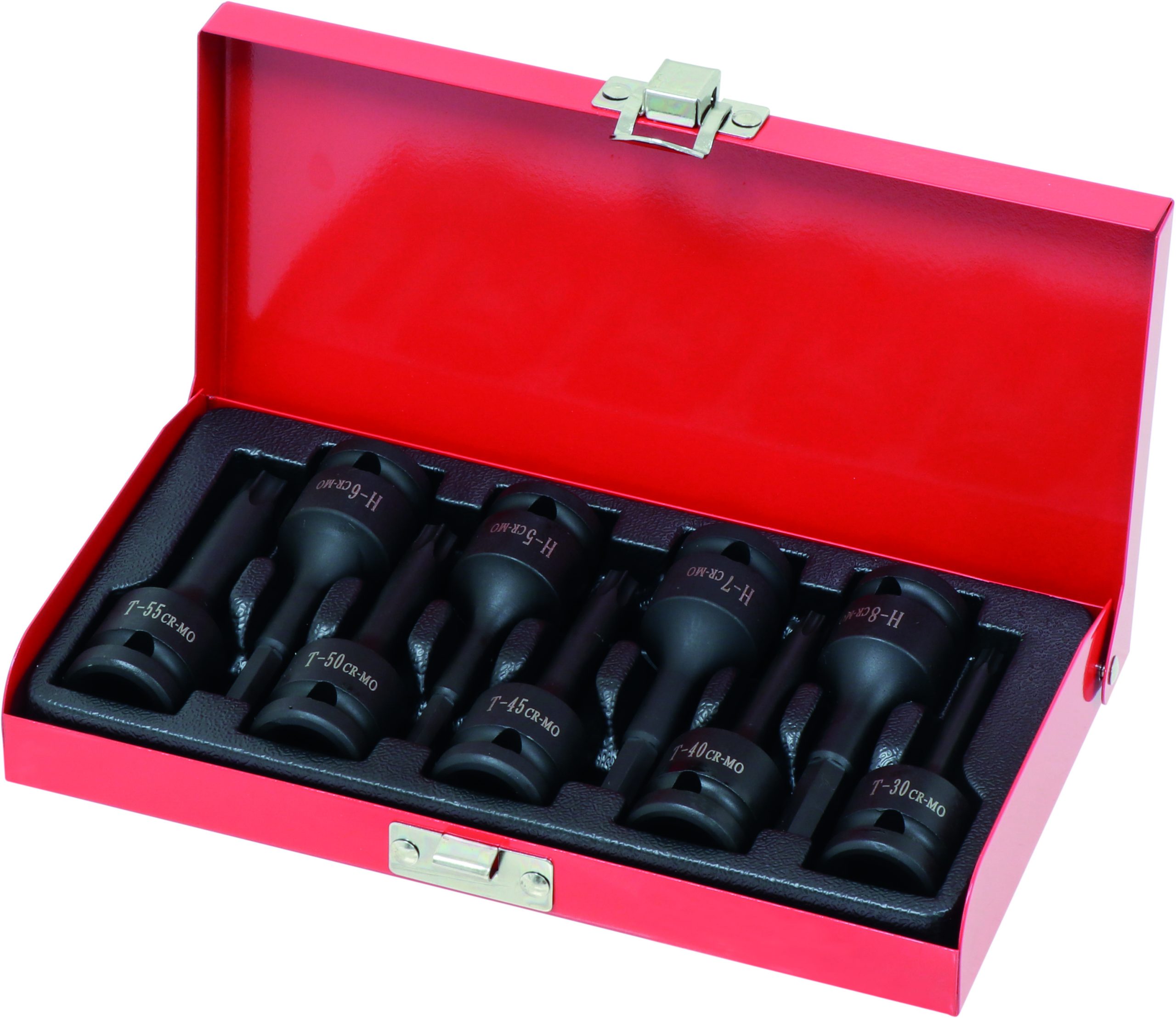 Douilles tournevis à chocs 1/2″ avec empreinte Torx® et hexagonal – coffret métallique de 9 pcs