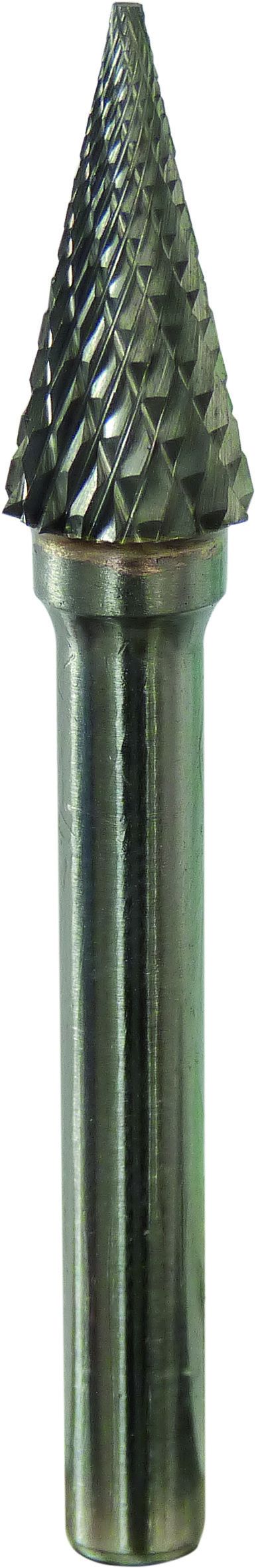 Fraise métallique conique à bout pointu sur tige Ø 6mm