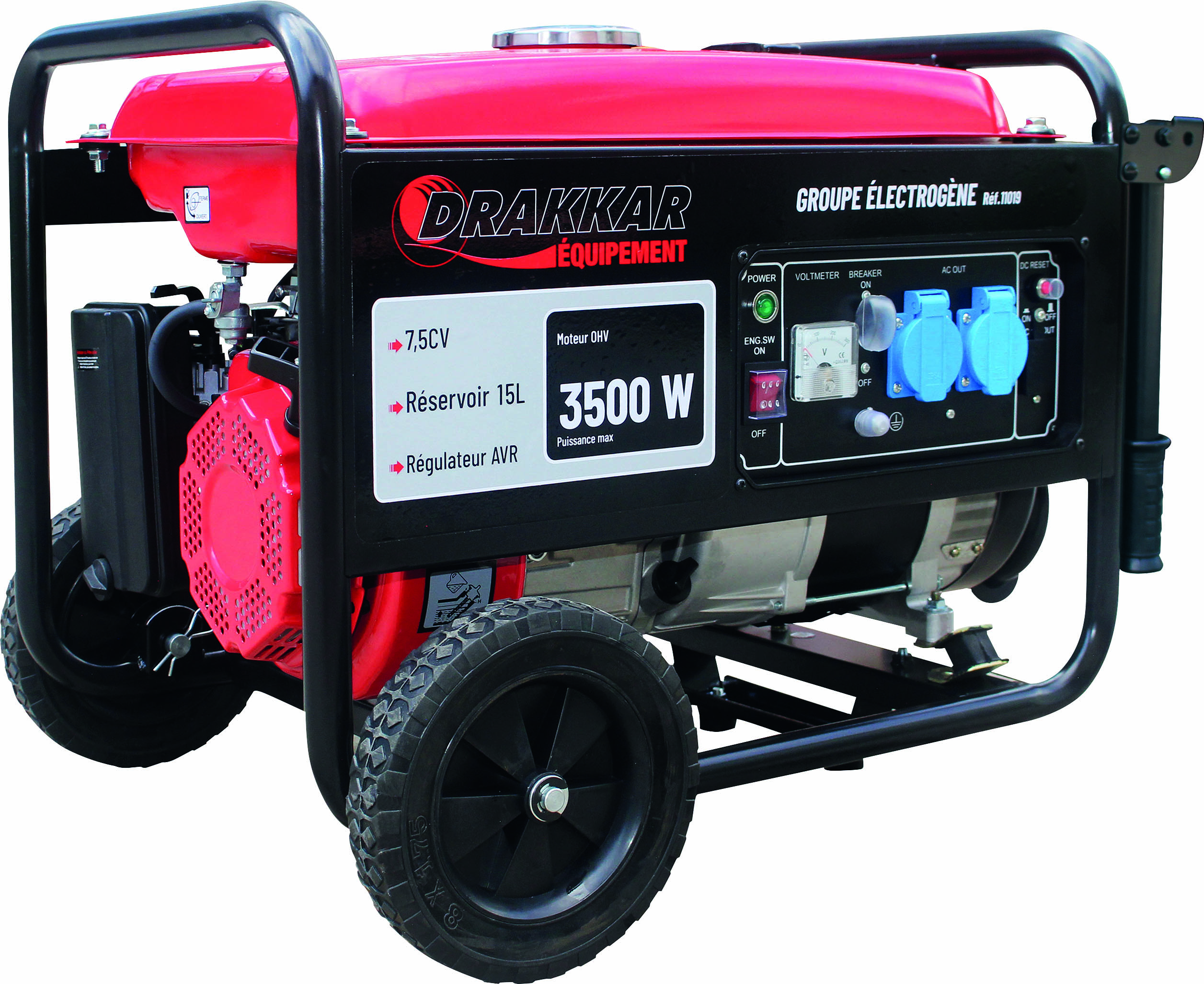 Groupe électrogène AVR monophasé essence 3500W 7,5CV avec kit brouette