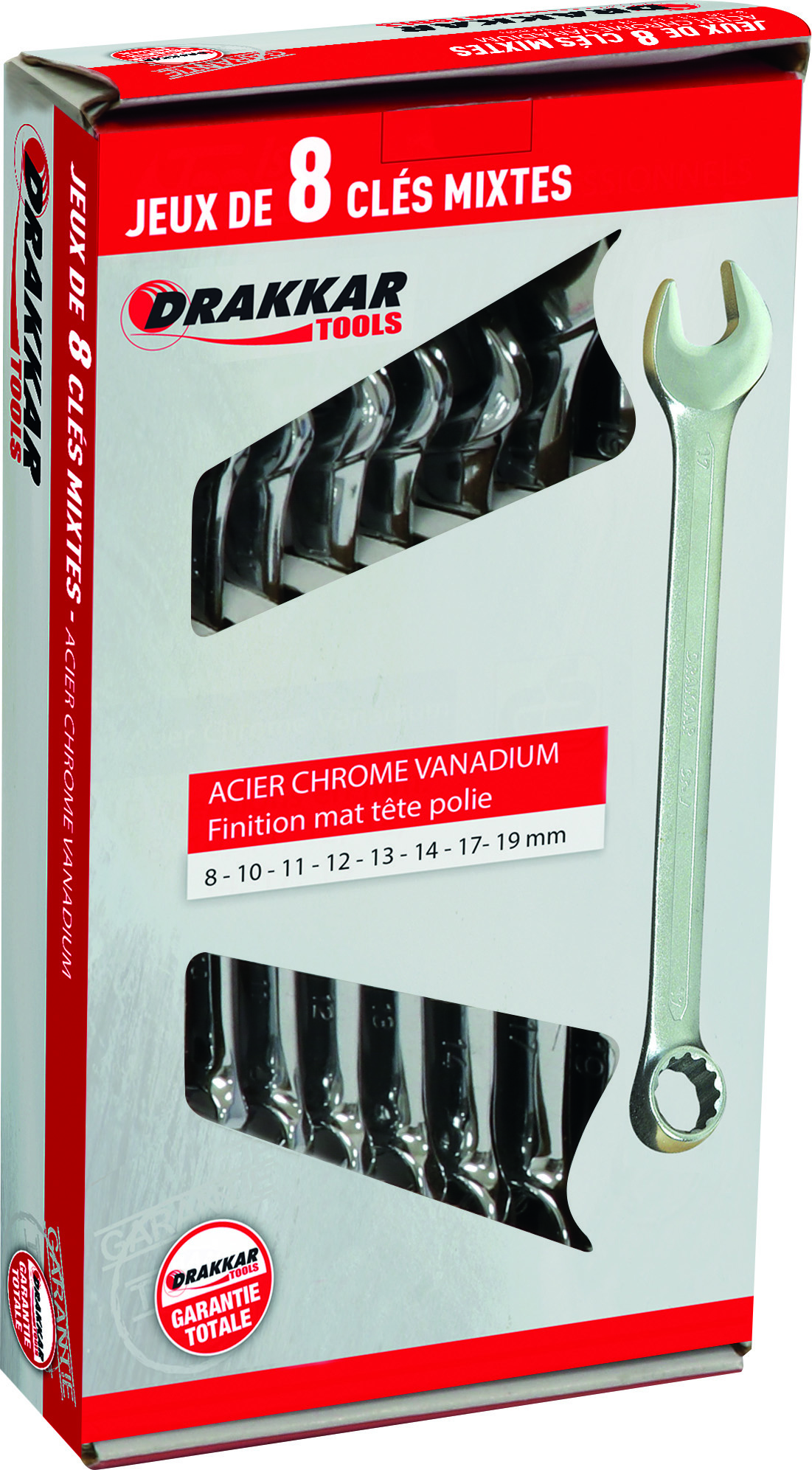Clés mixtes de 8 à 19mm tête polie – boîte carton de 8 pcs