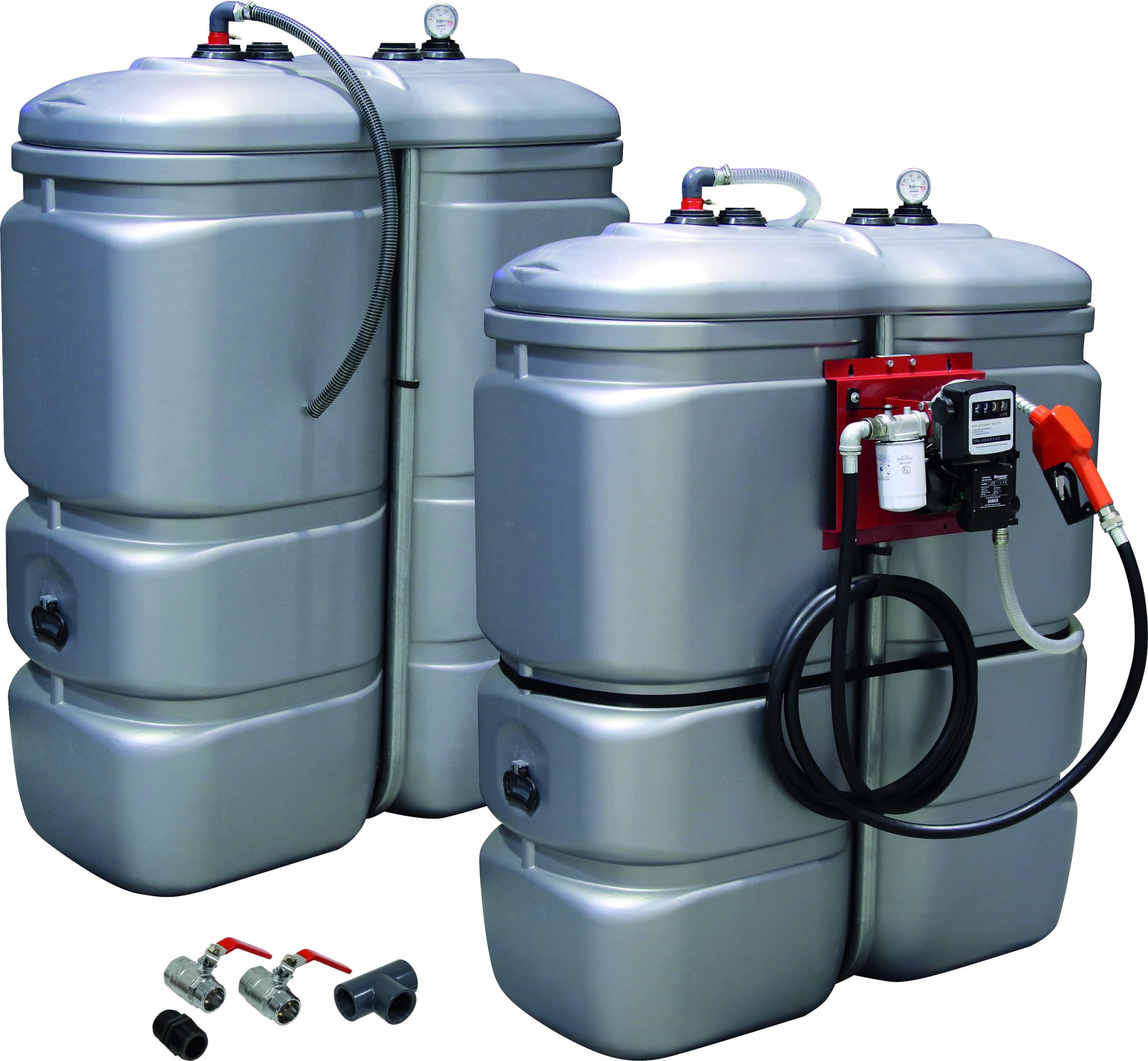 – 1 cuve de stockage gasoil PEHD 1000L double paroi avec kit station à gasoil 230V 60 l/min et pistolet automatique/compteur/filtre réf. 08073