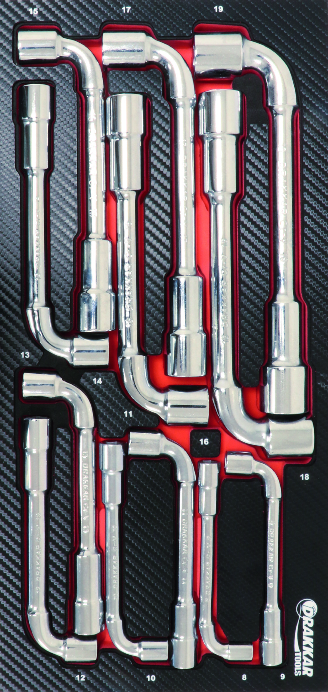 Module mousse 402x189mm carbone clés à pipe 8 à 19mm – 12 pcs