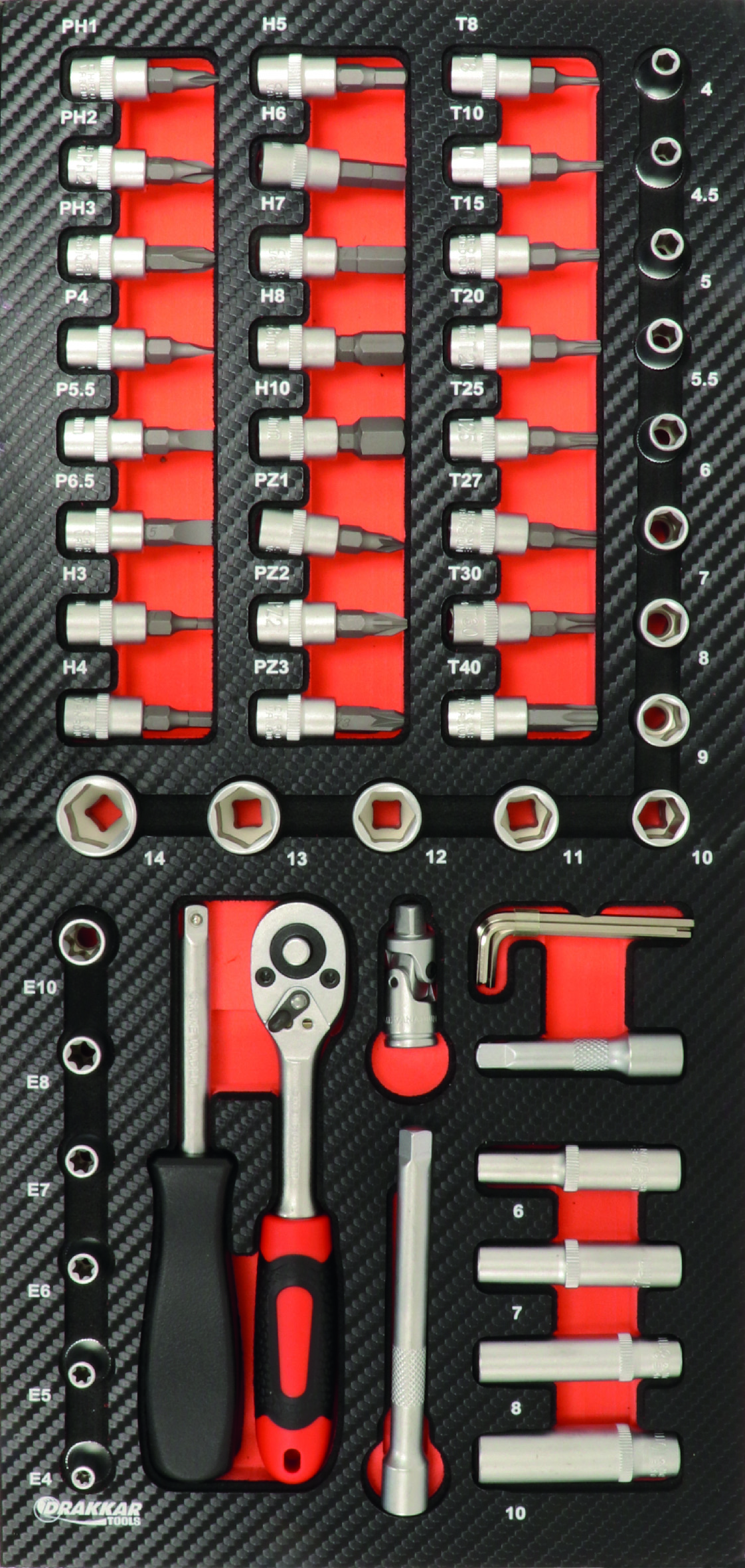 Module mousse 402x189mm carbone douilles/cliquet/embouts 1/4″ – 56 pcs