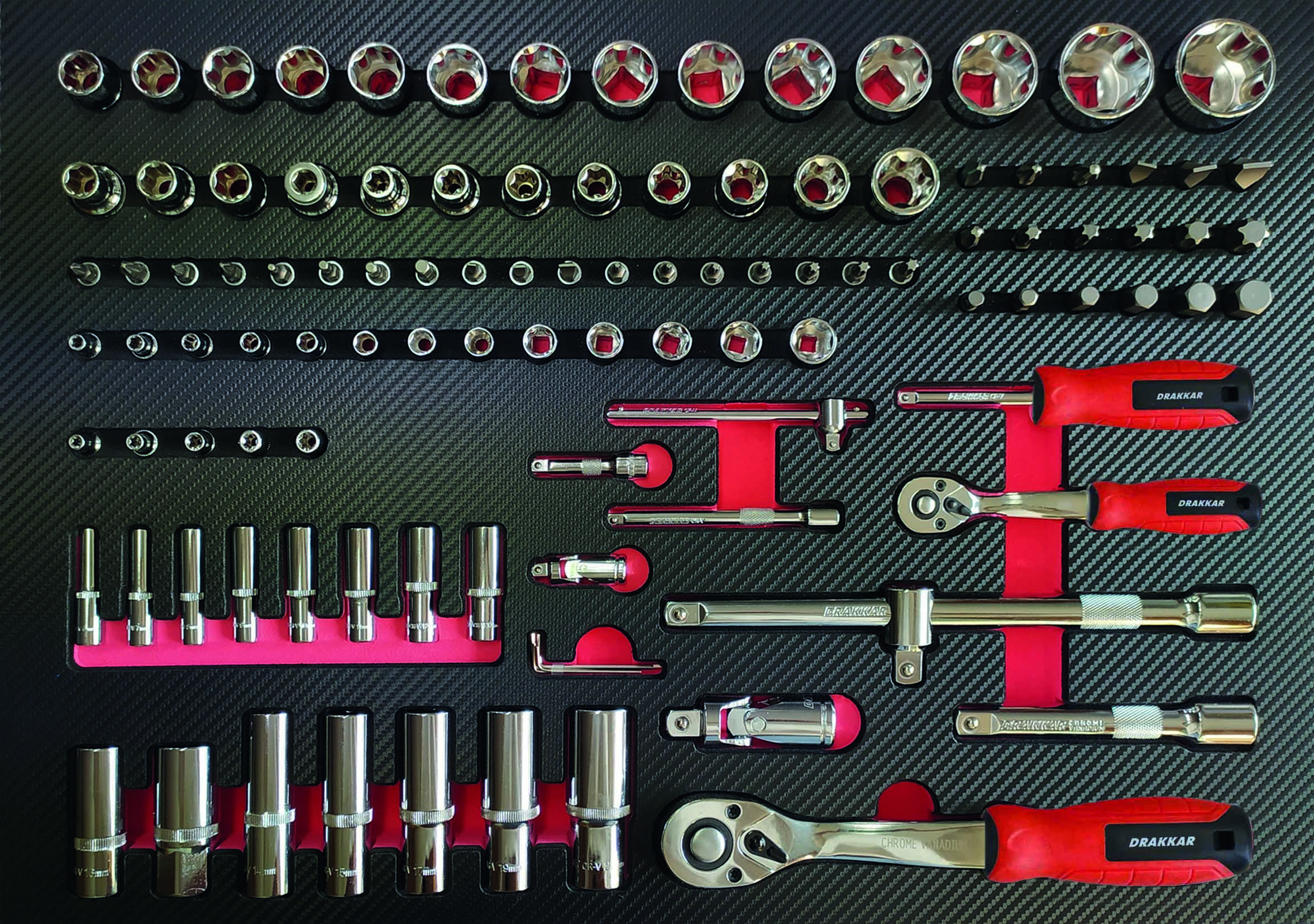 Module mousse 567x402mm carbone douilles 1/4″ et 1/2″ – 110 pcs