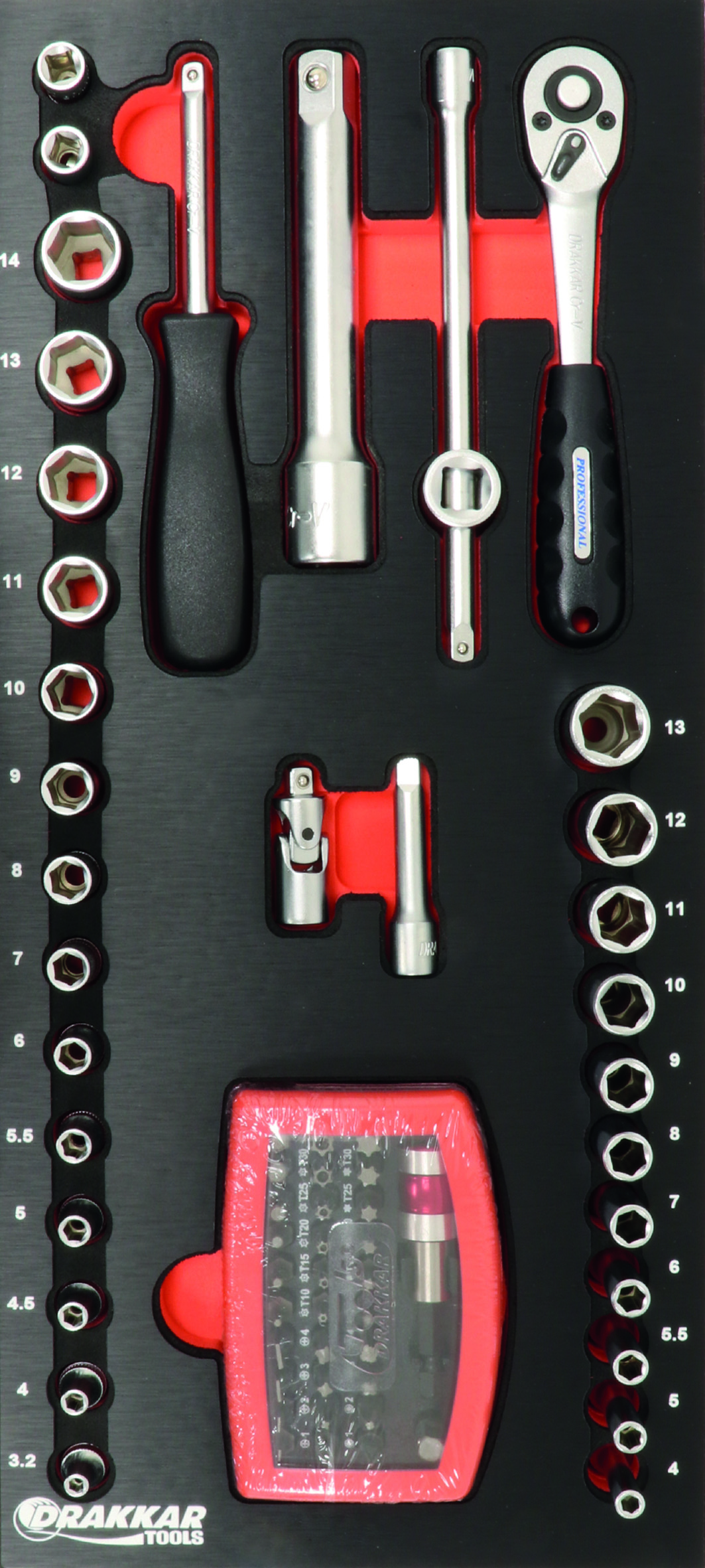 Module mousse 395x178mm métal douilles/cliquet 1/4″ – 85 pcs