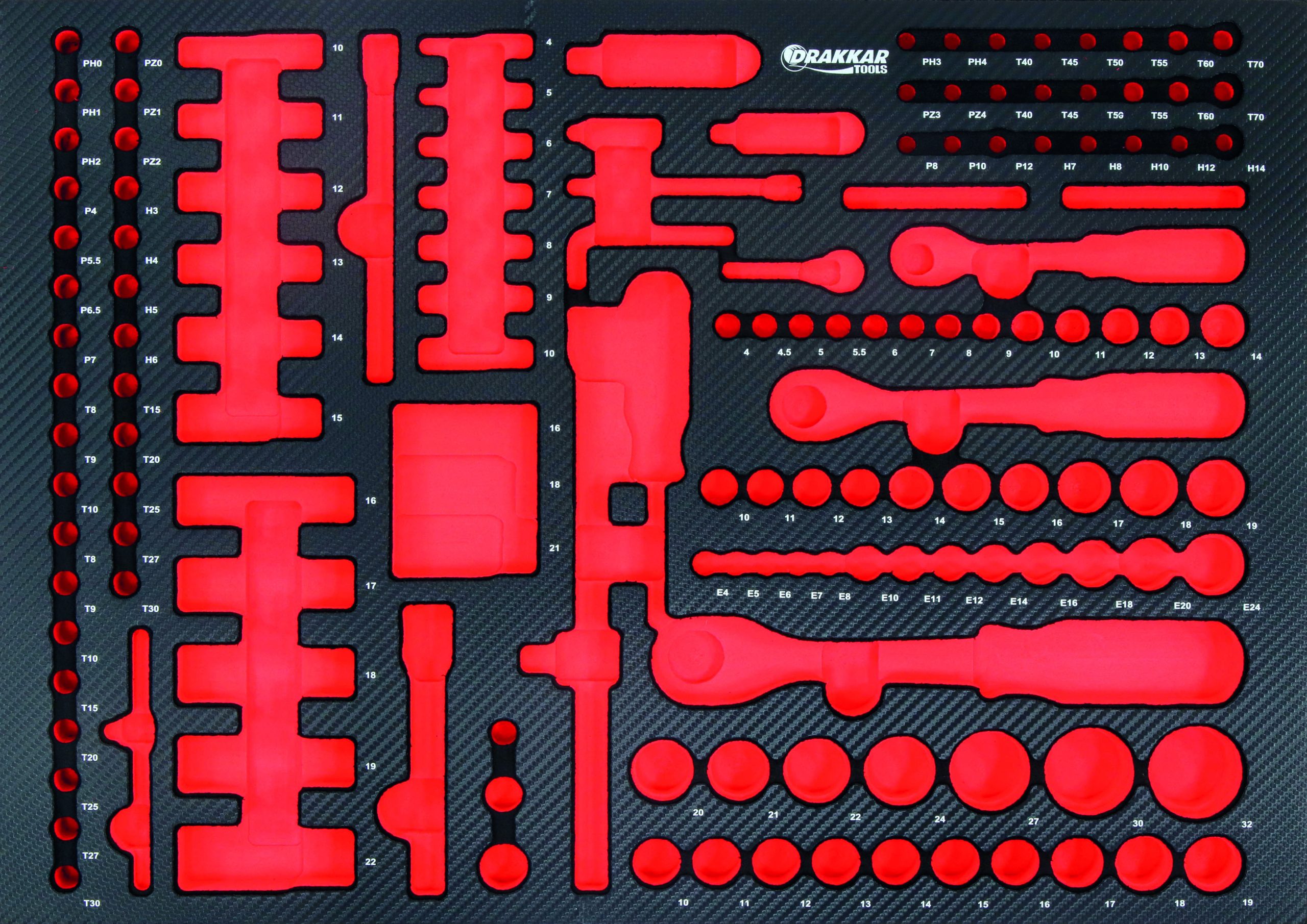 Module mousse vide – finition carbone pour douilles 1/4″ 3/8″ 1/2″