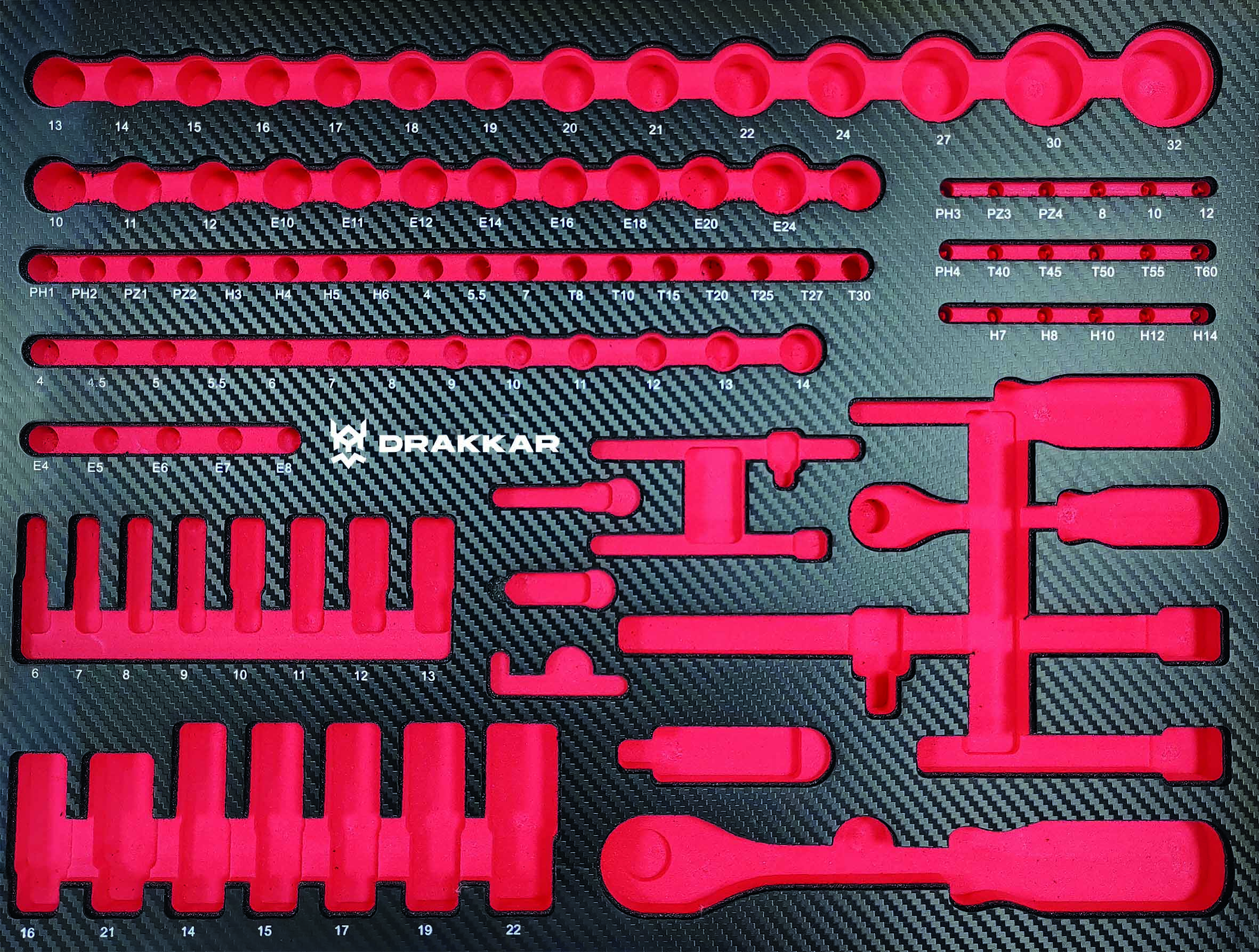 Module mousse vide – finition carbone pour douilles ¼’’ et ½’’