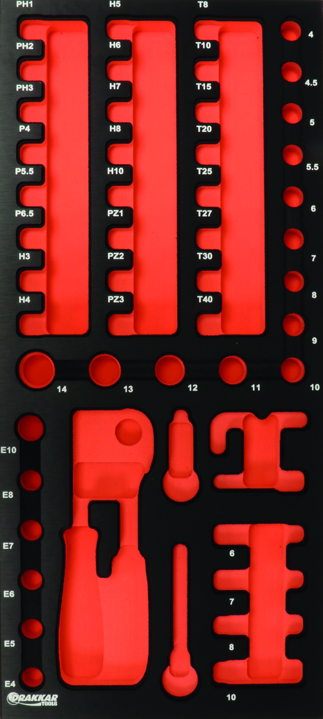 Module mousse 395x178mm métal vide pour douilles/cliquet/embouts 1/4″