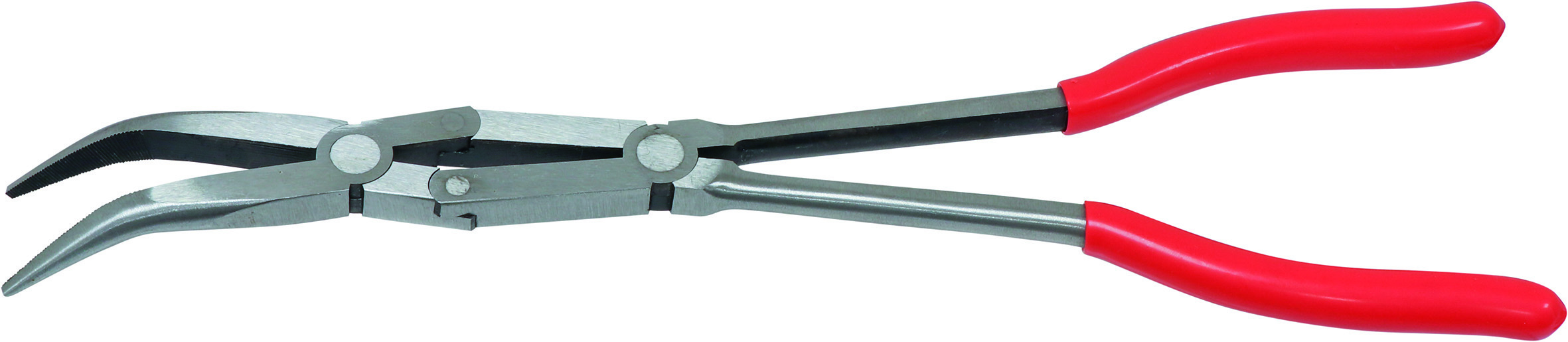 Pince coudée 340mm demi-ronde double articulation gainée