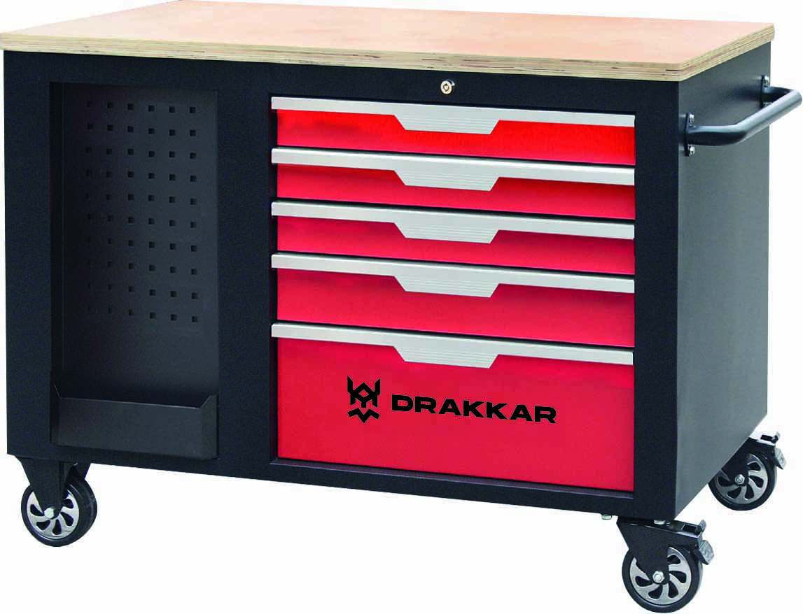 2×5 tiroirs, roulements à billes, avec serrure coulissante, verrouillable, tiroirs 1-4 max. 25kg, tiroir 5 max. 35kg.