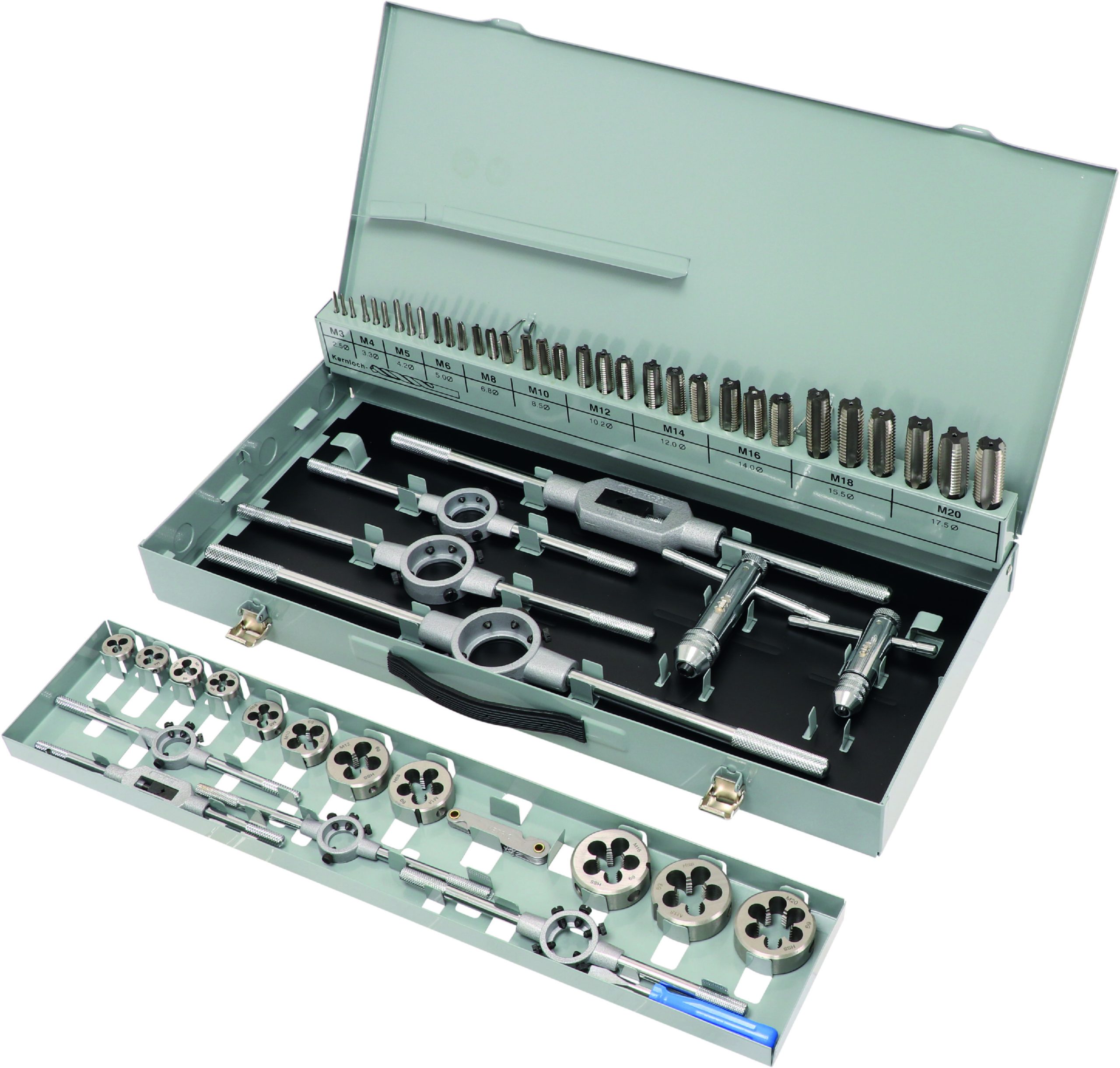 Taraud et filière M3 à M20 3 passes – coffret de 56 pcs