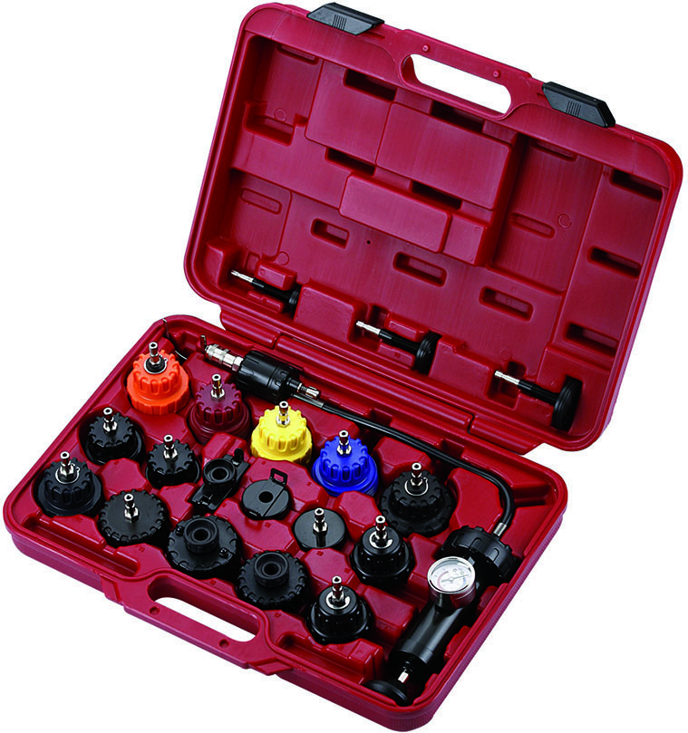 Kit complet pour la détection de fuites dans les systèmes de refroidissement.